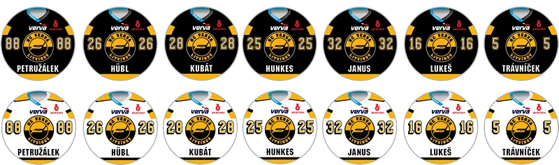 Sada obsahuje dvě pětky hráčů s licencovanými extraligovými dresy ve dvou variantách - domácí, hosté (světlé a tmavé dresy). V obou pětkách je obsažen 1 brankář a 6 hráčů (5 hráčů + 1 náhradník). Celkem se tedy jedná o 2 brankáře a 12 hráčů (viz. foto produktu).